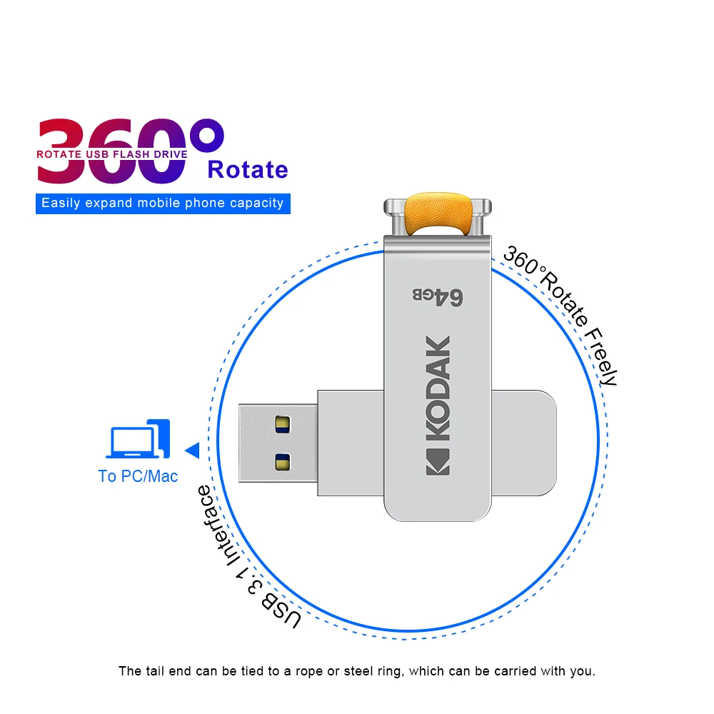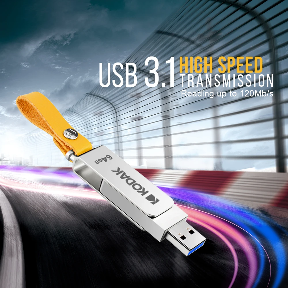 La Clé USB 3.1 KODAK se distingue par sa performance exceptionnelle. Avec une vitesse de lecture allant jusqu'à 120MB/s et d'écriture jusqu'à 35MB/s, elle assure un transfert de données rapide et efficace, idéal pour les professionnels et les passionnés de technologie.