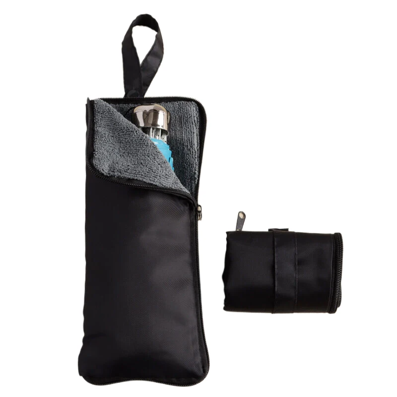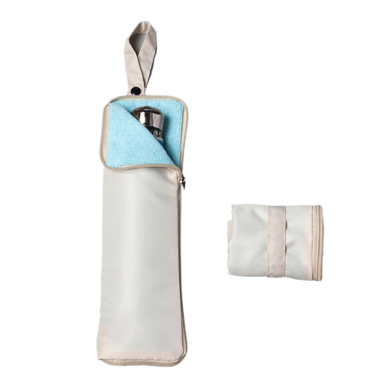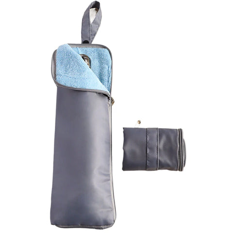 Découvrez cette pochette en microfibre spécialement conçue pour protéger votre parapluie portable. Sa matière absorbante garde votre parapluie au sec, évite les fuites d'eau et maintient vos effets personnels en toute sécurité. Idéale pour un usage quotidien, cette pochette est légère, compacte et élégante pour s’adapter à tous vos besoins.