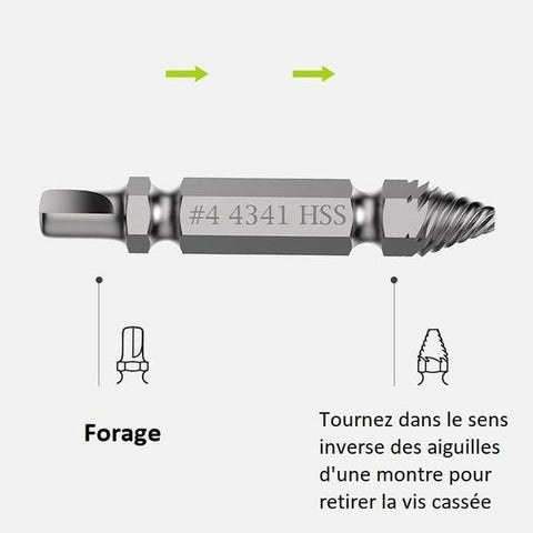 Vous êtes vous retrouver face à des vis qui ne peuvent pas se retirer ? Totalement abimées vous n'arrivez pas à les retirer ? Nous avons la solution ! Par sa forme particulière, l'extracteur va retirer les vis endommagées.