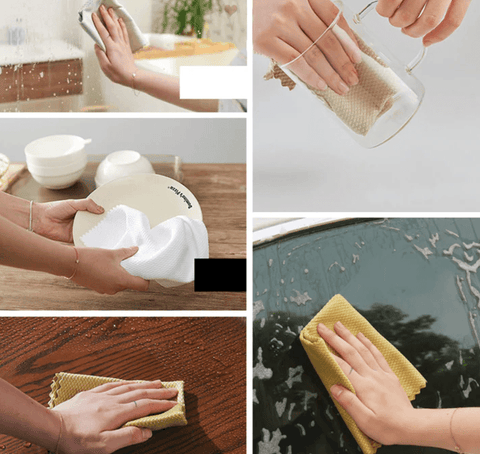Nos chiffons peuvent être utilisés sur les assiettes, les verres, la vaisselle, les miroirs, les montres, les couverts, les voitures, les téléphones portables, les fenêtres, les cuisinières et plus encore !