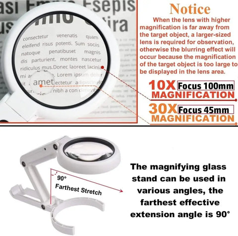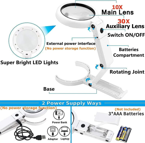 Loupe de Bureau Pliable LED 2 EN 1 - Zoom 30X 10X 🔍💡