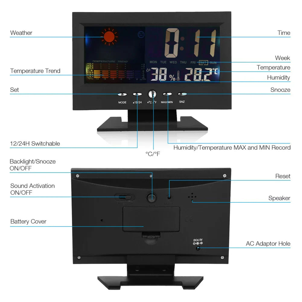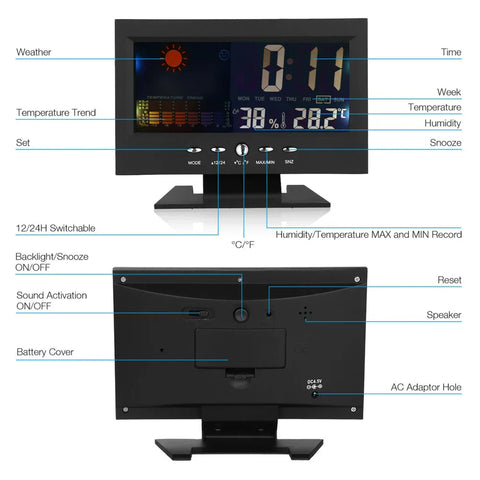Transformez votre quotidien avec ce réveil multifonctions qui offre météo, calendrier, et mesure de température et d'humidité. Ce réveil est parfait pour démarrer chaque journée informé et organisé.