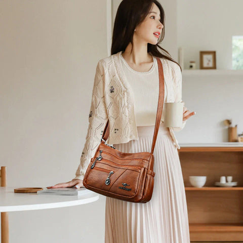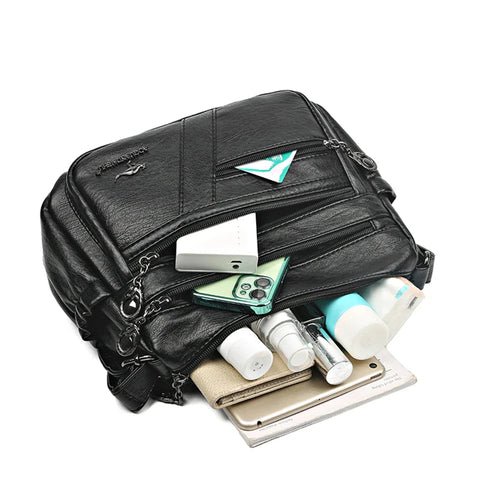 - 1 Sac à Bandoulière en Cuir PU Souple - Multipoche