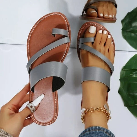 Découvrez nos sandales plates à bride orteil en cuir PU confort et élégance pour l'été!